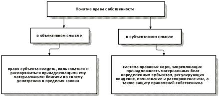 В обществе с государственно-правовой надстройкой экономические отношения собственности неизбежно получают юридическое закрепление. Это выражается как в системе правовых норм, регулирующих указанные отношения и образующих институт права собственности, так и в закреплении определенной меры юридической власти за конкретным лицом, являющимся собственником данной вещи. В первом случае говорят о праве собственности в объективном смысле, во втором - в субъективном смысле, или о субъективном праве собственности.