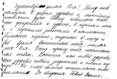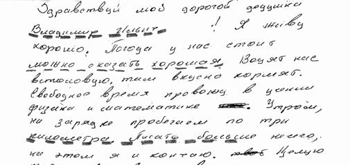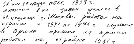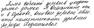Вариант правонаклонного почерка является преимущественным в почерках лиц, обучавшихся по прописям образца 1937 г. Это объясняется правым наклоном почерка прописей.