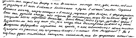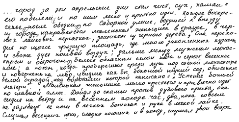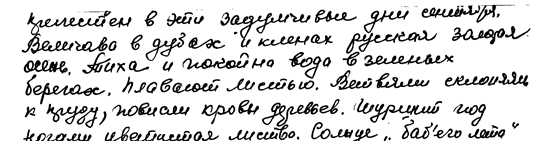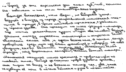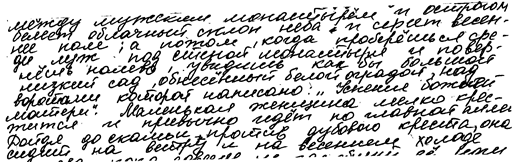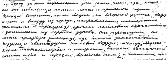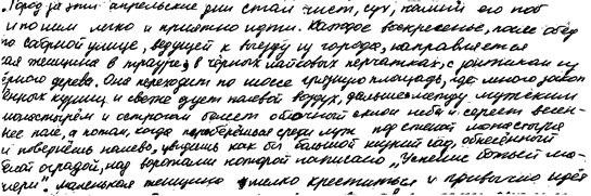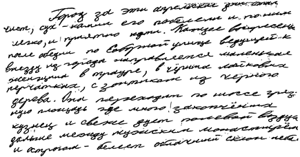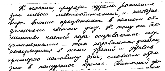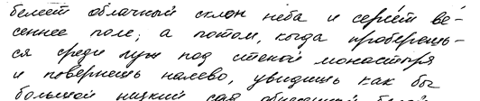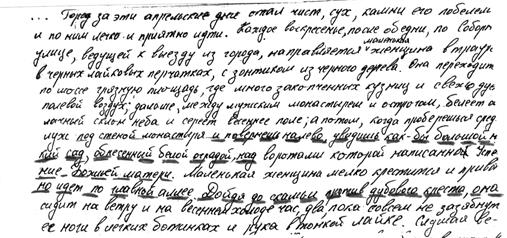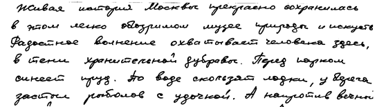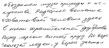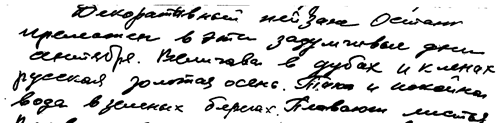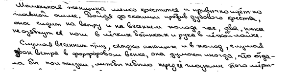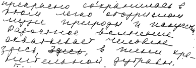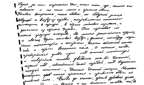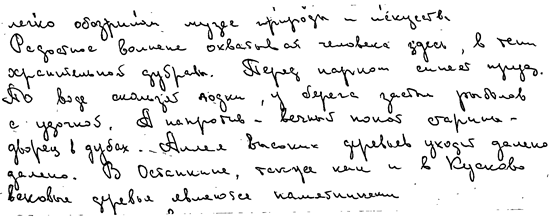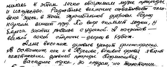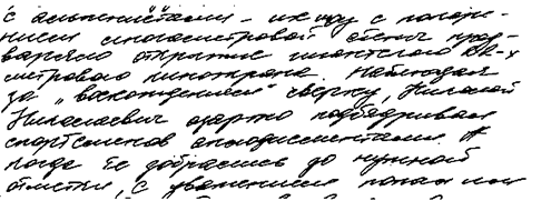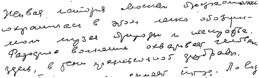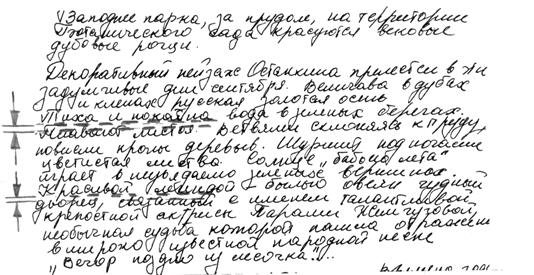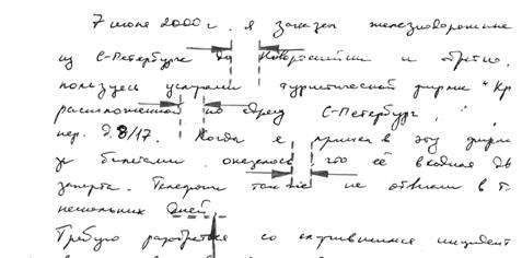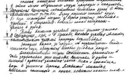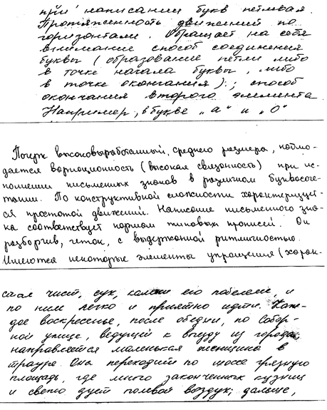 Надо помнить о том, что абзацы в рукописном тексте могут быть выделены за счет увеличенного интервала между строками. Подобное выражение признака встречается редко, но в случае проявления он должен быть отражен в характеристике топографических признаков почерка.