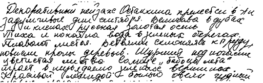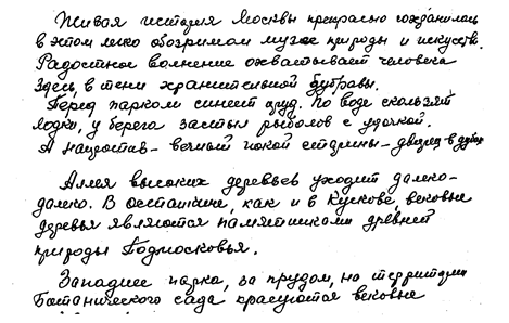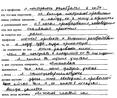 Для высоковыработанного почерка наряду с относительной стереотипностью характерны вариационность и относительно большая устойчивость к сбивающим факторам. Вариационность признаков – качество, проявляющееся при высокой степени сформированности письменного навыка.