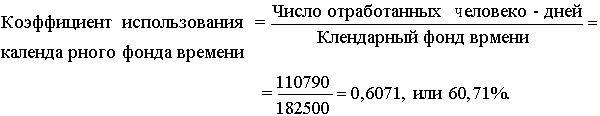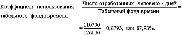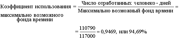 2. Коэффициент использования трудовых ресурсов в течении года - отношение фактически отработанного времени к возможному годовому фонду рабочего времени.