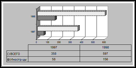 ПВС. Почти вдвое, по сравнению с 1997 г., возросло число правонарушений, находящихся в компетенции паспортно-визовой службы: 597 (358).
