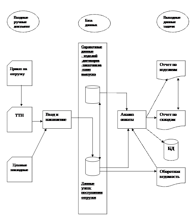 Автоматизированный учет поступления товаров и их отгрузки должен осуществляться на основе данных из цеховых накладных при поступлении и товаротранспортных накладных при отгрузке. По мере поступления эти данные должны вводится, накапливаться и храниться в базе данных в течение регламентированного периода.