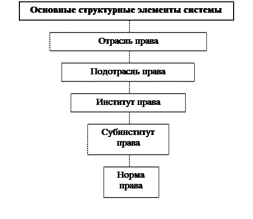 Вертикальная же структура права - это его деление на нормы, отрасли, институты и т. д.