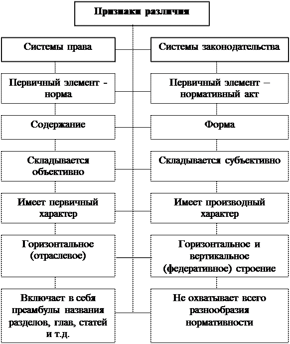 Признаки различия системы права и системы законодательства можно представить схематично: