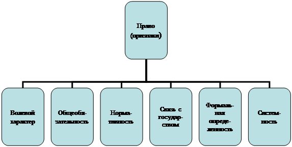 Право - социальный институт, имеющий свою собственную природу. Специфика права проявляется в его признаках, которые содержатся в приведенном выше определении. Эти признаки заключаются в следующем (Приложение 1):