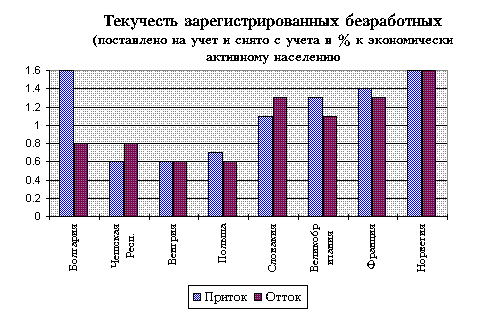 Безработица - лишь один из каналов, через которые происходит перераспределение трудовых ресурсов. Доля работников, прошедших через него и средняя продолжительность пребывания без работы в ходе такого перелива имеет серьезные экономические последствия. Рынки труда в большинстве стран Восточной и Центральной Европы характеризуются весьма невысокими показателями текучести в рядах безработных - и низким притоком, и невысоким выбытием. Основной канал перераспределения трудовых ресурсов -прямой переход с одного места работы на другое, минуя состояние безработицы. С другой стороны, те, кому не посчастливилось оказаться среди безработных, остаются без работы долгое время -средняя продолжительность безработицы .велика. А это означает большие страдания для безработных и для членов их семей, и ведет к постепенной утере трудовых навыков. Безработица имеет столь большую продолжительность не в последнюю очередь потому, что распределение вакансий по регионам сильно отличается от распределения безработных. Такая структурная несбалансированность рынка труда