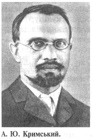 КРИМСЬКИЙ Агатангел Юхимович — укр. сходознавець, мовознавець, славіст, літературознавець, фольклорист, етнограф, педагог, історик, письменник, перекладач, академік УАН з 1918. Закін. 1889 Колегію Павла Ґалаґана в Києві, 1892 — Лазаревський ін-т сх. мов (Москва), 1896 — Моск. ун-т. У 1896 — 98 перебував (наук, відрядження) у Лівані та Сирії, вивчав мови, літератури та історію країн Бл. Сходу. З 1898 — приват-доцент, з 1900 — професор Лазарев. ін-ту сх. мов, водночас працював у Моск. ун-ті. 1900 — 18 — секретар Сх. відділу Моск. археол. т-ва. 1918 переїхав до Києва, де взяв діяльну участь в організації УАН (1918). До 1928 — її неодмінний секретар, керував Істор.-філол. відділом, протягом 1921 — 29 — директор Ін-ту укр. наук, мови (з 1930 — Ін-т мовознавства). Очолював Комісію словника живої укр. мови, Комісію історії укр. мови, Діалектол. комісію, Орфогр. комісію та ін. Від 1918 (з перервами) був професором, зав. кафедри україністики Київ. ун-ту. Незаконно репресований 20. VII 1941, помер в ув’язненні. Реабілітований 1960.