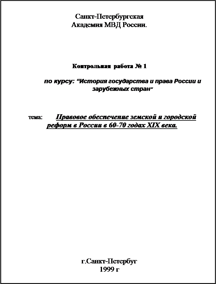Реферат: Правовое обеспечение земской и городской реформ в России в 60-70 годах 19 века