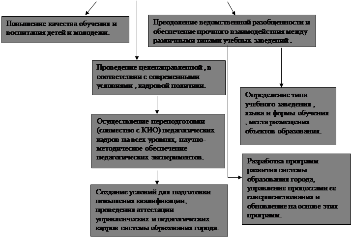 Система образования г. Бишкек- это относительно обособленная совокупность связанных между собой образовательных, обеспечивающих ,инновационных и управленческих процессов, регулируемых образовательными институтами на территории города. Они действуют на основе и в рамках нормативно-правовых актов и других ограничений. Все процессы осуществляющиеся в рамках образовательной системы, должны быть согласованны между собой ко входам-выходам, должна обеспечиваться внутренняя сбалансированность и устойчивость каждого процесса. Необходимо своевременно и координировано решать проблемы ,препятствующие этому и раскрывающие новые возможности для развития, выдвигать и общие цели, интегрирующие систему образования в единое целое, и частные цели отдельных подсистем, способствующие достижению общих целей. Указанные и другие связанные с ними функции в любой организованной системе выполняет управление, играющее роль основного системообразующего фактора. Управление предлагает сбор, переработку и перераспределение информации и реализуется благодаря особенной деятельности руководителей и специалистов , институированной и структурированной в рамках разных инстанций.
