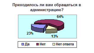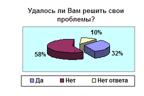 Из нее видно, что почти каждый 5 житель обращался в администрацию, и только третья часть обратившихся в администрацию смогла решить свои проблемы.