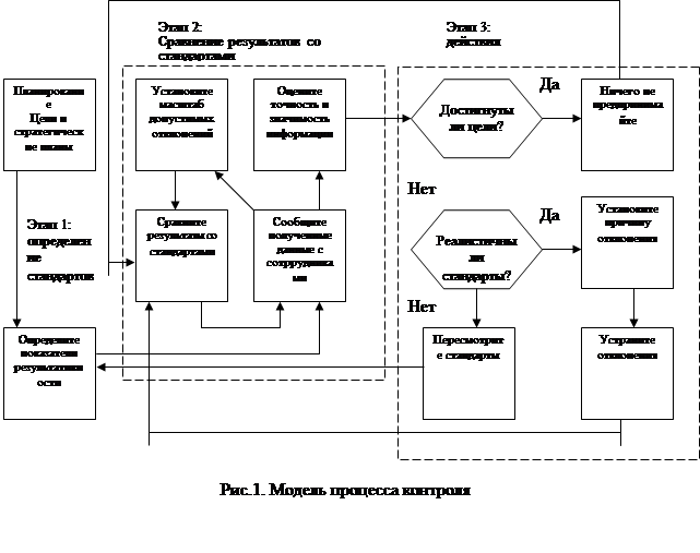 Как известно, контроль — одна из важных функций менеджмента. Контроль — это управленческая деятельность, задачей которой является количественная и качественная оценка и учет результатов работы организации. Главные инструменты выполнения данной функции — наблюдение, проверка всех сторон деятельности, учет и анализ. В процессе управления контроль выступает как элемент обратной связи, т. к. по его данным производится корректировка ранее принятых решений и планов. Контроль – это сбор и обработка информации о траектории движения управляемого объекта, сопоставление ее с параметрами, заданными заранее в планах или программах, выявление отклонений, анализ причин, вызвавших такие отклонения, их оценка и принятие решения о корректирующем воздействии. Задача контроля состоит не в том, чтобы зафиксировать невыполнение или какой-либо срыв, а в том, чтобы не допустить такого срыва, достичь цели в намеченный сроки. Поэтому контролеров следует поощрять за выполнение планов и программ, а не за то, что они «поймали» виновных.