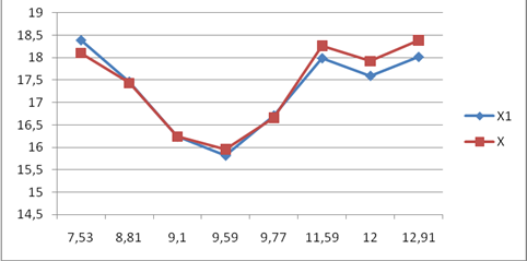Как видно из графиков, признаки следа локтя правой руки имеют незначительные отклонения в значениях координат. Из 9 выбранных признаков совпали только четыре точки. След предплечья из семи точек имеет совпадения лишь по двум. В остальных следах точки расположены практически на одних и тех же значениях координат. Данный факт свидетельствует о том, что четыре участка кожного покрова из шести исследованных после анализа их количественных признаков имеют совпадения по большинству точек. В этом случае можно сделать вывод о тождестве в категорической форме. При анализе первого участка кожного покрова утверждать о тождестве в категорической форме нельзя, так как имеются расхождения в половине значений координат. Вероятный вывод объясняется особыми свойствами кожного покрова тела человека, а также возможными неточностями при обработке данных. В случае, если имеется значительное расхождение данных (как видно из следа предплечья), выводы эксперта не могут базироваться лишь на результатах математической обработки. В исследовании эксперт ограничивается методом визуального сопоставления, а результат математической обработки не приводит. Корреляционная зависимость