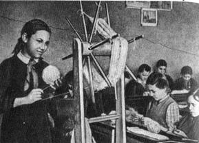 В те дни на заводе можно было видеть многих юношей и девушек, пришедших из московских школ. В телогрейках и стёганых ватных брюках, в больших не по размеру ботинках на толстой деревянной подошве стояли они на рабочих местах, некоторые на специальных подставках.