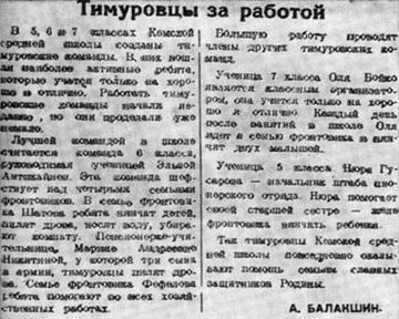 В 1941-1942 годы численность молодежи в оборонных предприятиях возросла. Если в 1940 году доля подростков на них составляло 6%, то в 1942 – 18%, а в наркомате тяжелой промышленности 24-49,4%. Многие из них в первые же дни войны выступили зачинателями патриотического движения. Работать на себя и товарища, ушедшего на фронт, выполнять в дни войны две нормы.