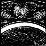 Эти вещи принадлежат к числу незаурядных по мастерству исполнения. Безымянный мастер, создавший блюдо, умело строит его композицию, сочетая с растительным узором изображения птиц. Расположенный по широкому борту орнамент выполнен в очень высоком рельефе, тщательно проработан. Водосвятная чаша отличается от подобных изделий ХVII столетия более сложной формой и нарядным декором.
