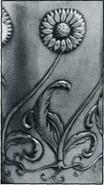 В фондах музеев Кремля есть интересные изделия петербургского мастера Владимирова. Это столовые приборы и небольшая прекрасно исполненная ваза для цветов. В своих работах мастер с большим умением использует самые разнообразные растительные мотивы, располагая их по всей поверхности предмета. На вазе по чеканным проканфаренным долам расположены рельефные распустившиеся цветы ириса с переплетающимися тонкими изогнутыми стеблями, переходящими в четырехлепестковое основание.