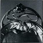 В 1880-1890-е годы в русском серебряном деле и ювелирном искусстве доминирует новый стиль, получивший название модерн. Наряду с изображением цветов и растений возникает своеобразный орнамент, в основе которого лежали волнистые, текучие линии. Так, например, группа стаканов украшена чеканным и гравированным растительным, оттененным цветным золочением, узором колеблющихся на длинных стеблях подсолнухов и сполохов. В текучести орнаментальных форм модерна хорошо используется пластичность металла. Видимый беспорядок, «случайность» в расположении цветных акцентов - средство подчеркнуть динамическую асимметрию форм, показать сам материал, его фактуру и цвет, выявить заложенные в самой его природе декоративные возможности. Изящная небольшая конфетница выполнена в стиле модерн. Текучие изгибы тонкой фигурной ручки, переходящие в изогнутые, стилизованные стебли-ножки, подчеркивают изысканную форму изделия. Резной растительный орнамент из плодов, стеблей, листьев очень декоративен.