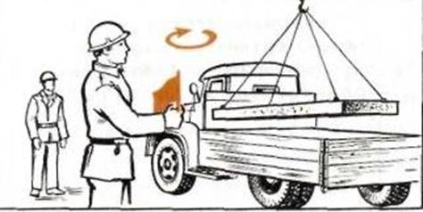 Натянуть стропы или незначительно поднять груз или крюк — правая рука согнута в локте с флажком, направленным вверх; над флажком ладонь левой руки