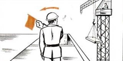 Осторожное движение крана, груза, стрелы — руки согнуты в локтях, флажок в правой руке направлен горизонтально с упором конца в ладонь левой руки, после этого подают сигнал, соответствующий требуемому движению