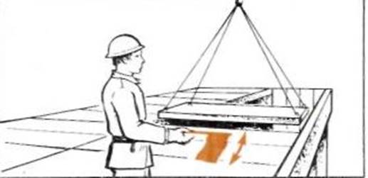 Плиты поднимают плавно, без рывков. Чтобы они не раскачивались и не вращались, к ним прикрепляют оттяжки из пенькового, капронового или тонкого стального каната, которыми монтажники удерживают конструкции в нужном положении.