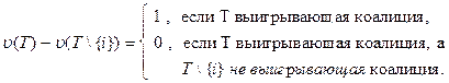 где суммирование по T распространяется на все такие выигрывающие коалиции T , что коалиция T \{i }не является выигрывающей.