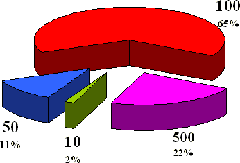 Однако уже к третьему кварталу 2008 года большинство ненастоящих банкнот были 100-долларовыми – их часть составила 55 процентов. В 2007 году поддельных соток было лишь 5 процентов.