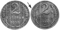 С особой осторожностью нужно отнестись к 2-копеечной медной монете 1925 г. Две разновидности 2-колеечной монеты 1924 г. отличаются от чрезвычайно редкой монеты 1925 г. (разумеется, кроме последней цифры в дате) очень мелкими деталями. В одном случае это всего лишь иное расположение узелков на стеблях колосьев, а в другом — отсутствие узелков на нижних стеблях. Подправка узелков, разумеется, не представляет трудности для фальсификатора.