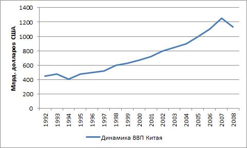 Рис. 1 Динамика ВВП Китая 1992-2008 гг.