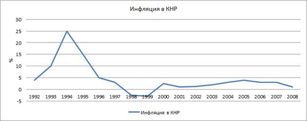 Рис.3 Темпы инфляции в Китае 1992-2008 гг.