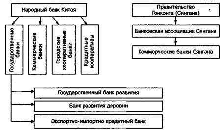 В Китайской Народной Республике действует двухуровневая банковская система. На первом уровне находится центральный банк, а на втором — специализированные государственные банки и обширная сеть коммерческих банков. При этом отдельные депозитные, кредитные и расчетные операции могут осуществляться так называемыми городскими и сельскими кредитными кооперативами, а также городскими кредитными банками.