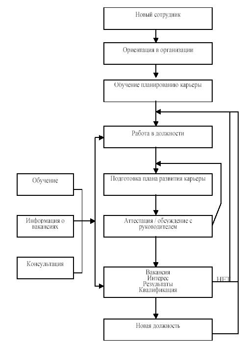 Планирование карьеры — одно из направлений кадровой работы в организации, ориентированное на определение стратегии и этапов развития и продвижения специалистов. Это процесс сопоставления потенциальных возможностей, способностей и целей человека, с требованиями организации, стратегией и планами ее развития, выражающийся в составлении программы профессионального и должностного роста. Перечень профессиональных и должностных позиций в организации (и вне ее), фиксирующий оптимальное развитие профессионала для занятия им определенной позиции в организации, представляет собой каръерограмму - формализованное представление о том, какой путь должен пройти специалист для того, чтобы получить необходимые знания и овладеть нужными навыками для эффективной работы на конкретном месте.