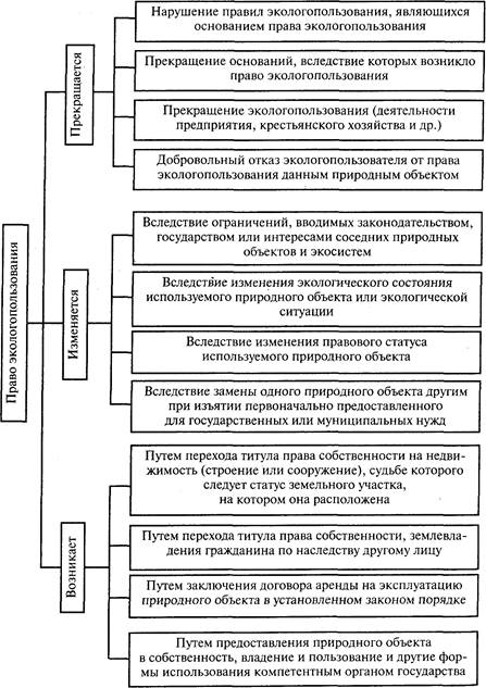 Рис. 3. Возникновение, изменение и прекращение права экологопользования