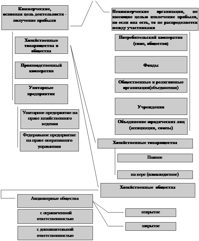 С началом рыночных отношений в Российской Федерации возник вопрос о введении основных элементов рынка, благодаря которым функционирует рыночная экономика. Многообразие организационно-правовых форм, регламентируемых Гражданским Кодексом Российской Федерации, позволяет понять общие принципы построения рынка и рыночных отношений, различия между коммерческими и некоммерческими организациями.
