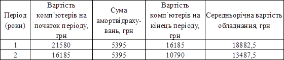 Середньорічна вартість комп’ютерів у періоди дії лізингової угоди