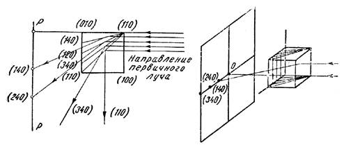Для отражений первого порядка (при n=1) числа hkl в указанных уравнениях соответствуют индексам отражающей плоскости. Для отражений высших порядков эти числа будут отличаться от индексов плоскости на некоторый общий множитель, равный порядку отражения, т. е. получаются путем умножения индексов отражающей плоскости на порядок отражения.