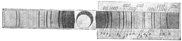 При индицировании необходимо иметь в виду, что при применении нефильтрованного излучения К-серии характеристических лучей на рентгенограммах для одной и той же плоскости всегда будут появляться две группы линий: сильные линии, отвечающие K a -излучению, и более слабые (приблизительно в 5— 6 раз) —К b .