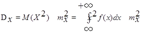 Для описания рассеивания случайной величины вокруг математического ожидания используют дисперсию. На практике для расчета дисперсии используют следующую формулу: