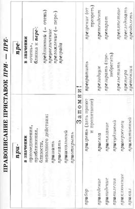 3. "Таблицы по русскому языку". Все таблицы в издании подобны этой: полосные, закрытые, простые, расположенные на полосе лежа, поперек текста. Зачастую вклиниваются прографки, подобные "Запомни!", нарушающие стройность таблиц, но привлекающие внимание учащегося.