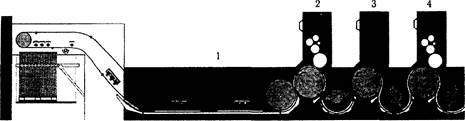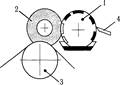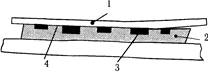 Рисунок 6 – Схема глибокого друку 1 – задруковуваний матеріал; 2 – друкарська форма; 3 – друкувальний елемент; 4 – проміжний елемент