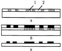 Офсетний спосіб друкування – один з основних та найбільш перспективних способів, значення якого зростає. На формах плоского друку (рисунок 3, а) друкарські 1 та проміжні 2 елементи практично розташовані в одній площині та мають різні фізико-хімічні властивості: у більшості випадків перші сприймають фарбу (гідрофобні або оліофільні), а другі – сприймають вологу (гідрофільні).