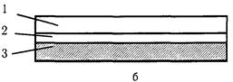б – триметалеві (1 – хром або нікель, 2 – мідь, 3 – алюміній або сталь)
