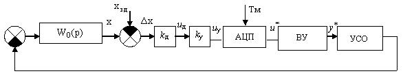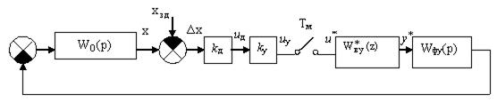 Рис. 5.1.1. Модель замкнутой системы управления непрерывным технологическим объектом
