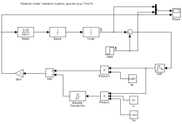 Рис. 5.5.1. Математическая модель дискретной системы управления при Тм = 1,441с
