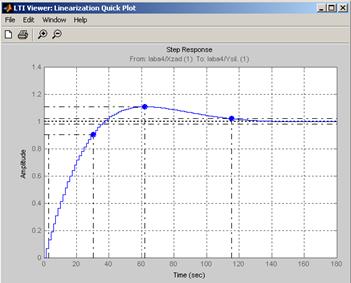 Переходная характеристика, полученная с помощью модуля LTI-Viewer |