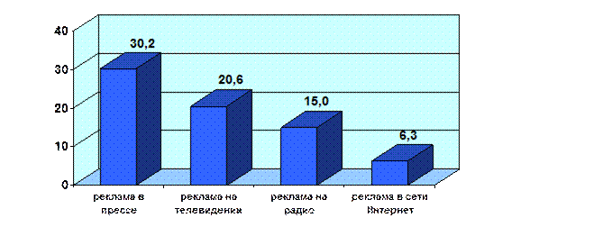 Анализ доверия аудитории к рекламе СМИ позволяет сделать вывод о том, что степень доверия внутри аудиторий прессы и радио выше, нежели внутри аудитории телевидения и Интернет.