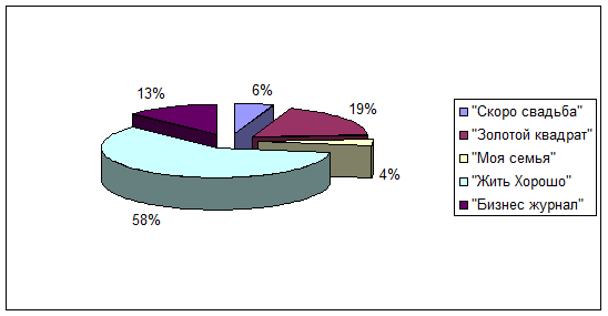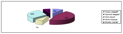 4. Наибольшей популярностью среди журналов у клиентов Калужского отделения Сбербанка России пользуется «Золотой квадрат»-47%(66 чел), размещение рекламы в нем имеет наибольший процент вероятности донесения информации до целевой аудитории, чем в других изданиях.