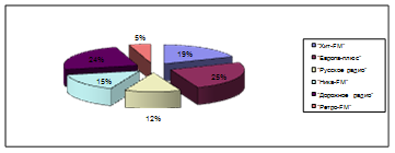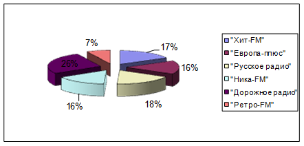 3. Нужно помещать рекламу на радио, так как именно этот канал коммуникации является третьим по результатам проведенного опроса -20%(63 чел). Размещение рекламы на радио «Европа-плюс» будет наиболее эффективным, его слушают-25%(84 чел). Запускать аудиоролик необходимо в период с 6 до 10 часов утра и с 17 до 19 часов.
