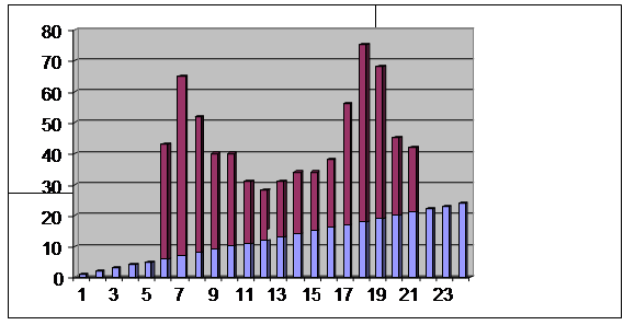 По мнению сотрудников, клиенты Калужского отделения Сбербанка России слушают радио в периоды с 7 часов до 9 часов утром с 12 часов до 14 часов днем и с 18 до 21 вечером. |