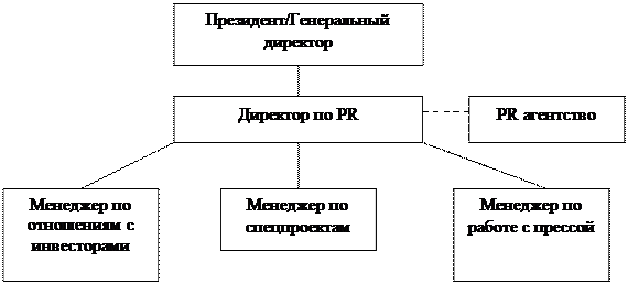 Конечно, существуют организации, в которых наличие PR крайне необходимо, но есть и такие, где его создание будет неоправданно. Следовательно, можно сделать вывод, что характер взаимодействия с PR-агентствами и наличие штатного PR-отдела зависит от специфики фирмы, однако в большинстве случаев необходимо иметь в наличии штатного сотрудника или небольшой PR-отдел, прибегая по необходимости к услугам специализированных агентств.